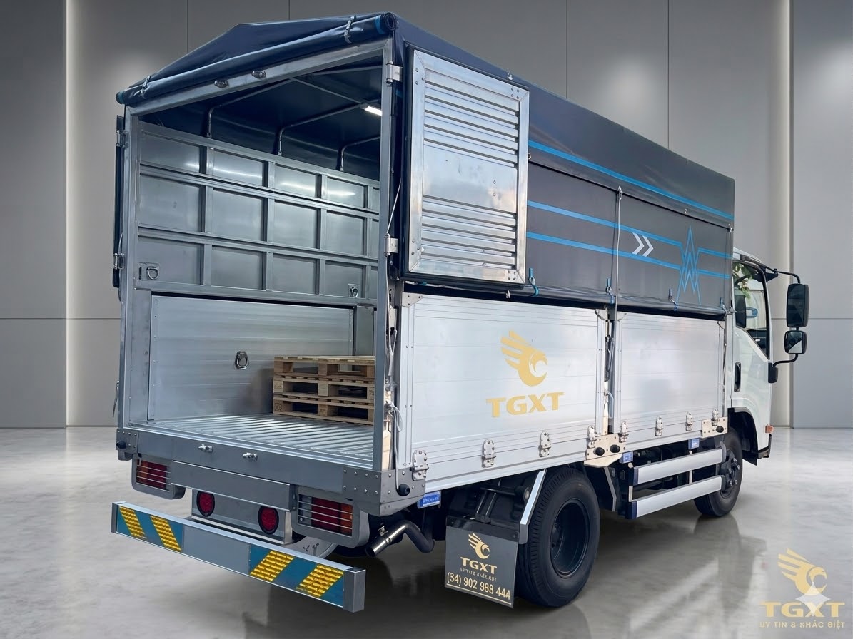 4mm, sàn thùng bằng thép mạ kẽm hoặc inox dày 2.5mm, kết hợp khung xương hộp kẽm 40x40mm giúp tăng độ cứng vững và khả năng chịu tải. Thiết kế này không chỉ nâng cao độ bền mà còn hạn chế hư hỏng trong quá trình sử dụng lâu dài.