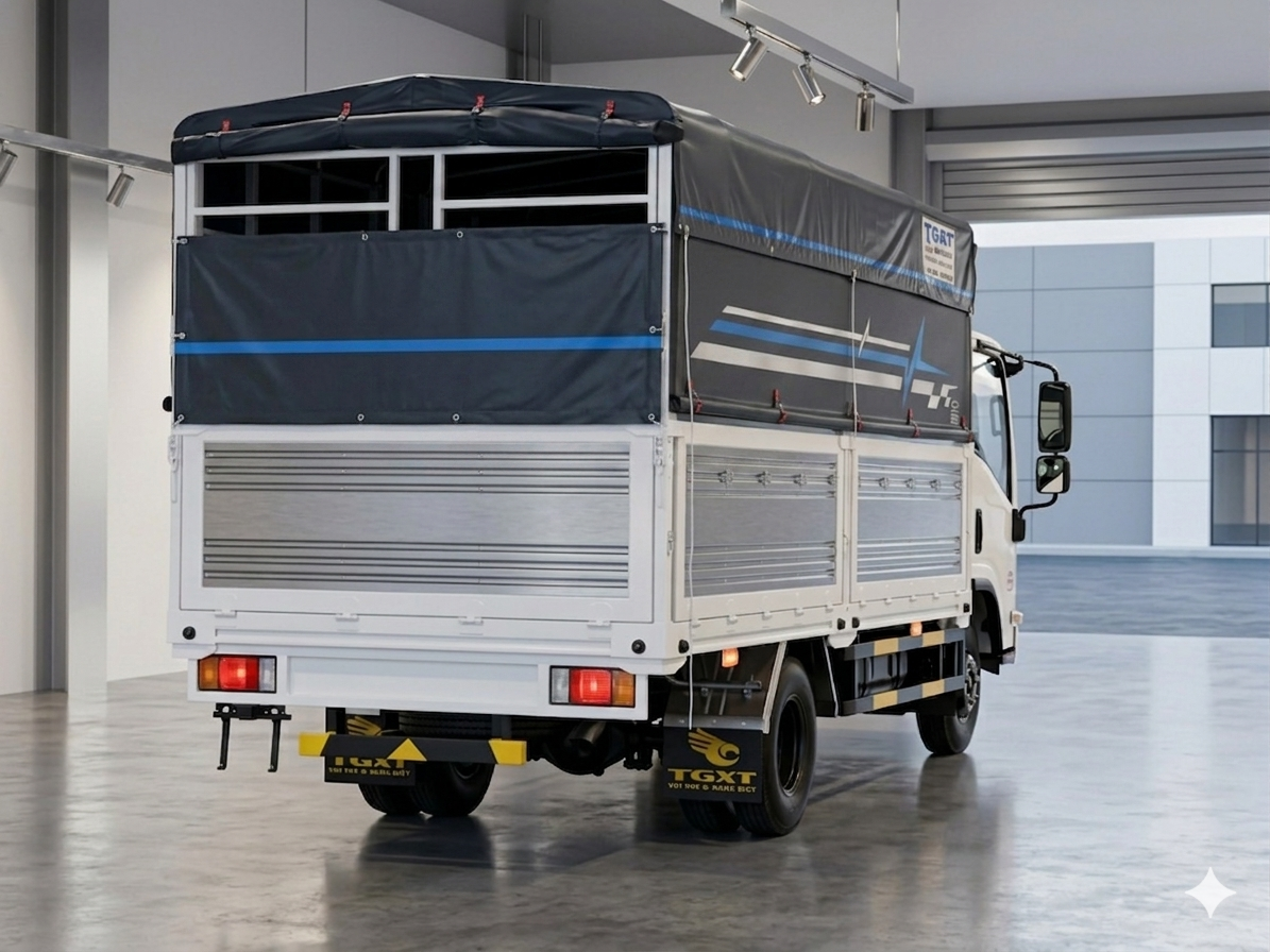 Thiết kế thùng linh hoạt, dễ bốc dỡ: Xe sử dụng thùng mui bạt, cho phép mở bửng linh hoạt ở hai bên, tạo điều kiện thuận lợi cho việc xếp dỡ hàng hóa. Thiết kế này giúp người dùng dễ dàng tiếp cận hàng từ nhiều hướng, giảm thời gian bốc xếp và tối ưu nhân công.